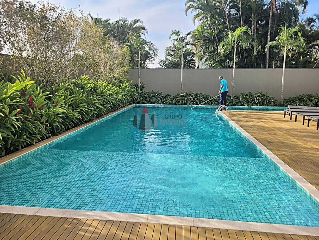 Piso Laminado, Mobiliado, Armario Dormitorio, Armario Banheiro, Armario Cozinha, Ar Condicionado, Piscina, Varanda Gourmet, Armario Area Servico,