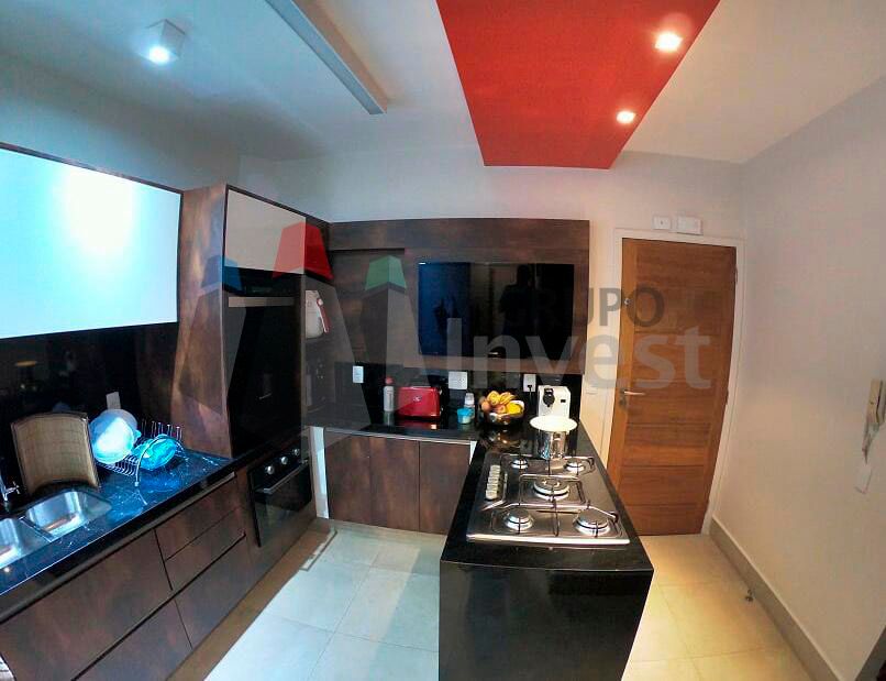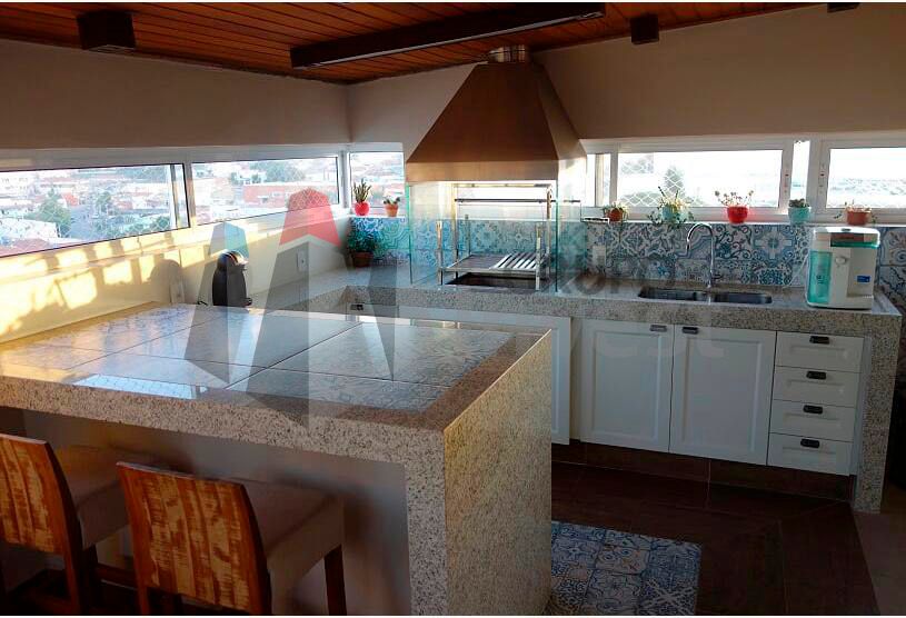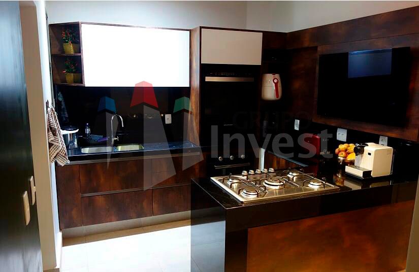 Piso Ceramica, Portao Eletronico, Sacada, Armario Dormitorio, Armario Banheiro, Armario Cozinha, Churrasqueira, Piscina, Servico Cozinha,