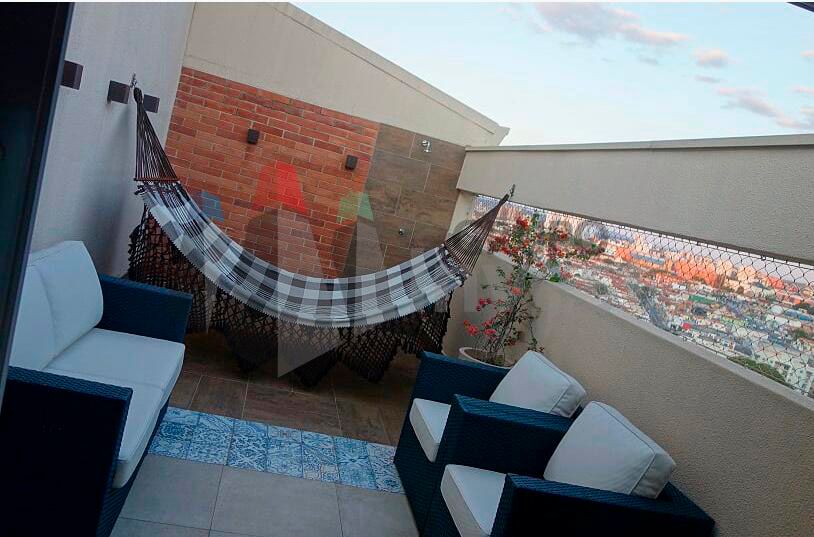 Terraco, Solarium, Armario Closet, Armario Sala, Piso Ceramica, Piso Laminado, Quintal, Sauna, T V Cabo, Varanda, Vestiario, Mobiliado, Portao Eletronico, Zelador, Armario Dormitorio,