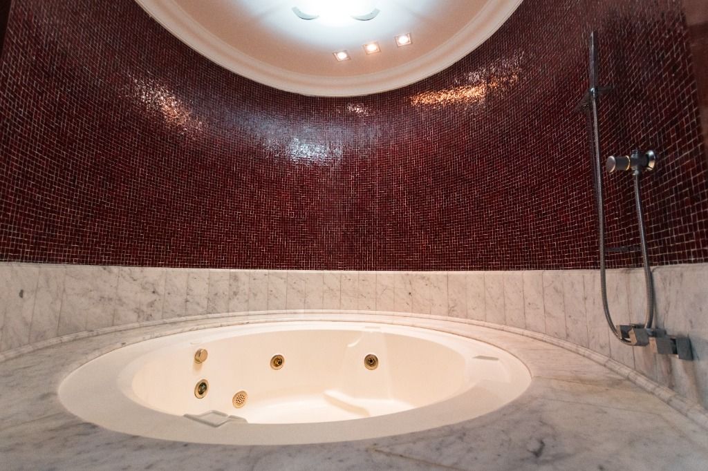Pe Direito Duplo, Deposito, Terraco, Armario Closet, Armario Sala, Armario Escritorio, Piso Ceramica, Copa, Escritorio, Quintal, Sauna, T V Cabo, Varanda, Vestiario, Hidromassagem,