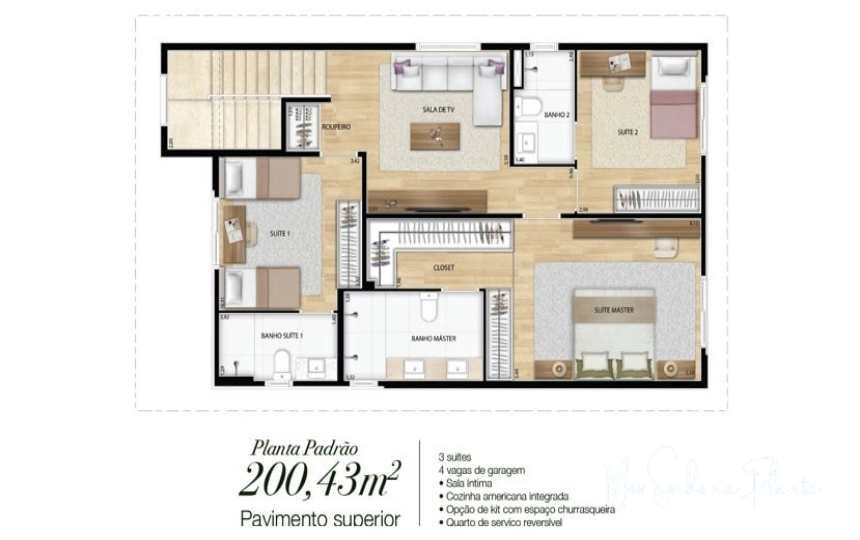 Pe Direito Duplo, Escritorio, Quintal, Armario Dormitorio, Piso Porcelanato, Armario Banheiro, Armario Cozinha, Interfone, Agua, Esgoto, Rua Asfaltada, Energia Eletrica, Interfone, Churrasqueira, Piscina,